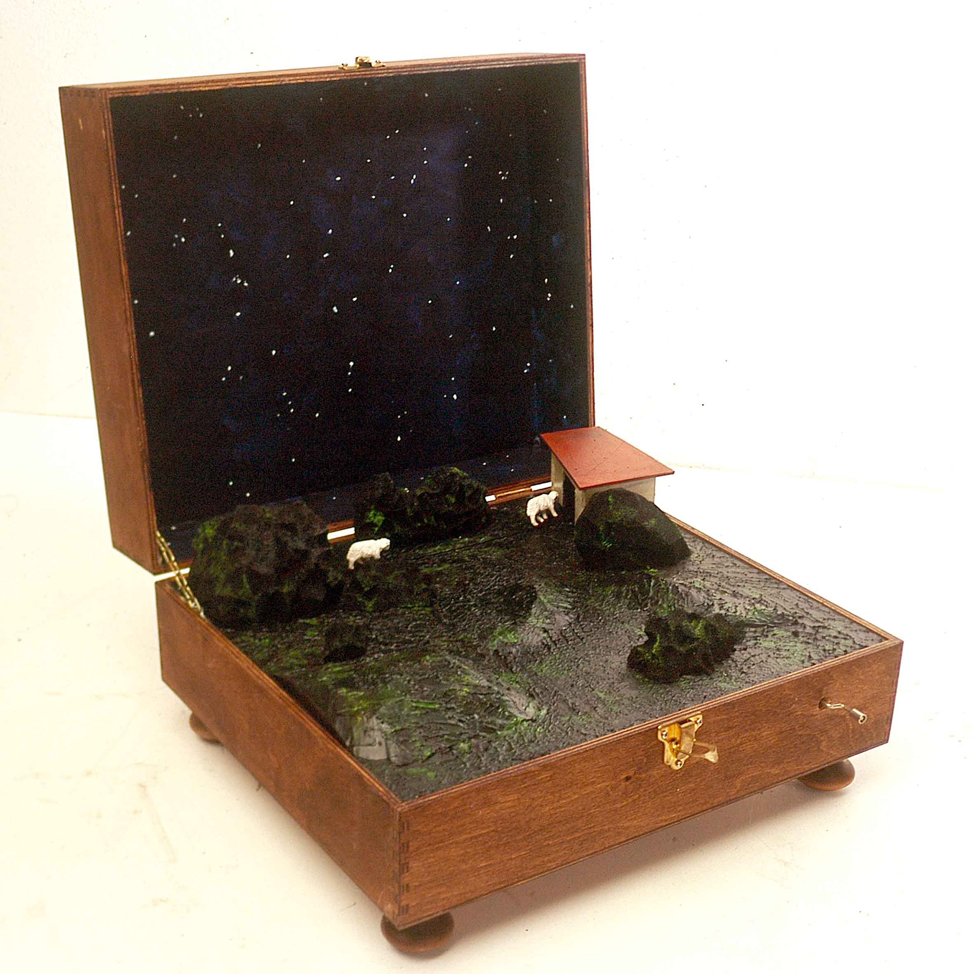 Per collezionisti insonni riflette sulla smania di alcuni collezionisti di accumulare opere senza sosta, senza soffermarsi sul vero significato di ciò che acquistano, trattando l’arte come una merce di scambio. Per questi collezionisti instancabili Bonomi ha realizzato un carillon/diorama, nella quale delle pecorelle attraversano un paesaggio notturno, accompagnate dal suono di una ninna-nanna.